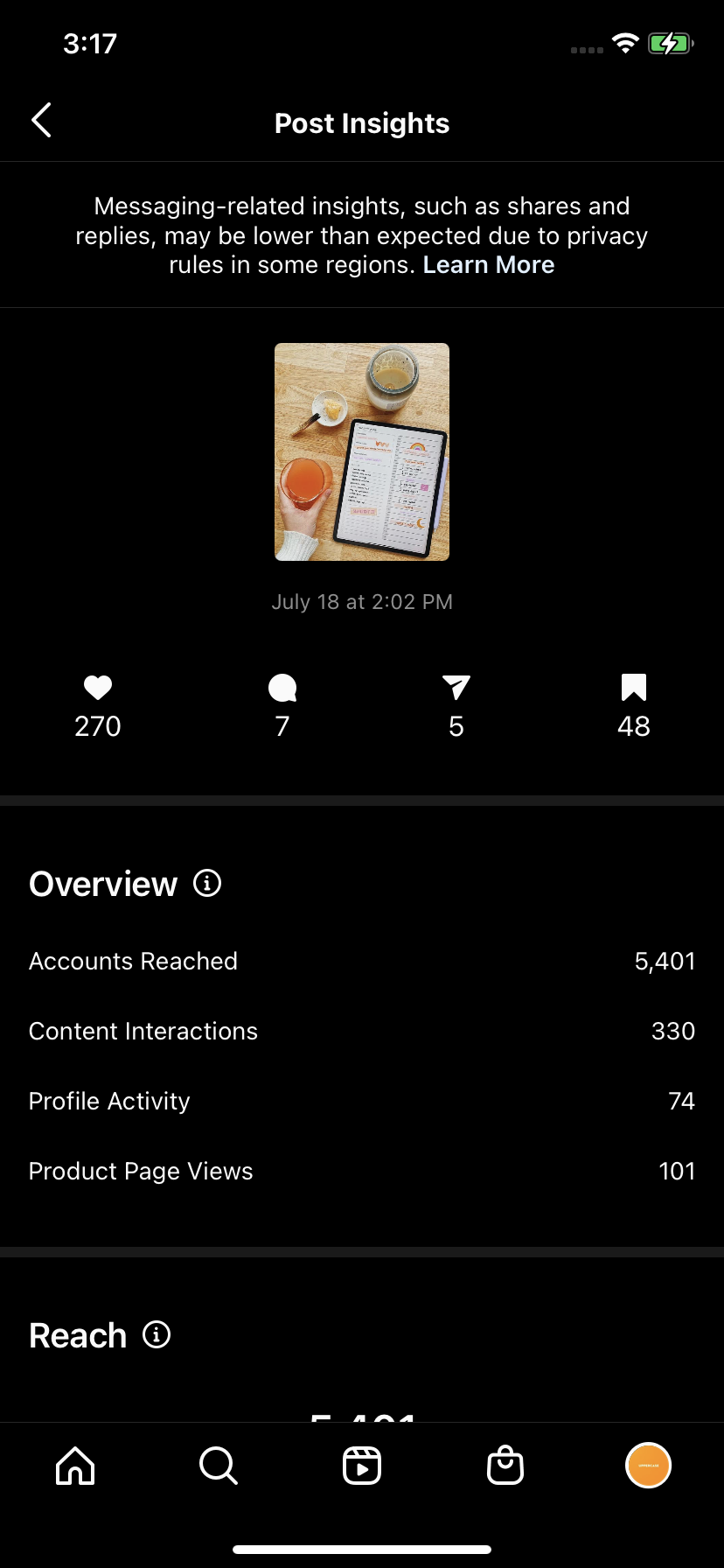 Finally, comes the numbers. How much did people really like this post? The sends and saves are just as important as the likes. And it looks like 48 people loved this post so much that they want to come back to it later!